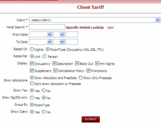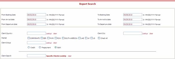 can be searched based on the Country, City, Market, Group and Specific clients.