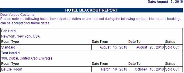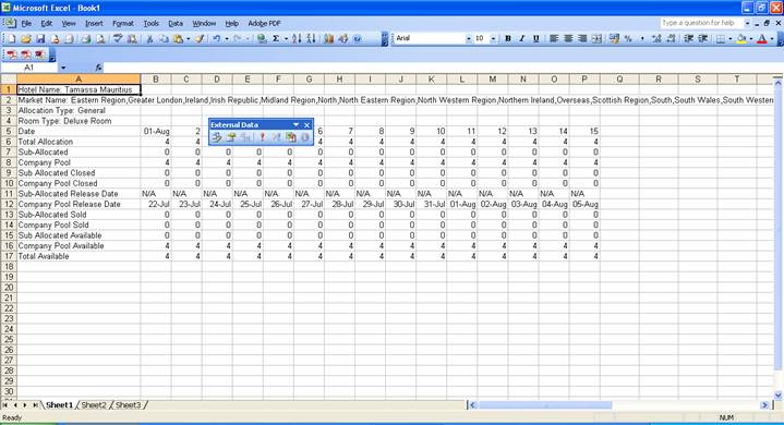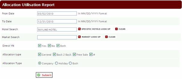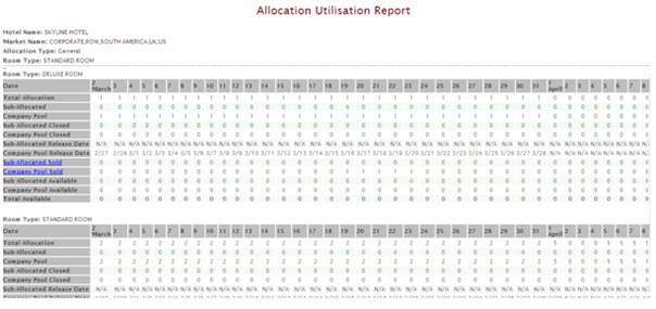 Example: Allocation Utilisation Report for the Skyline Hotel for the month of